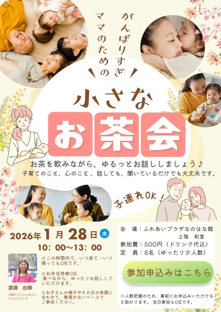 頑張りすぎママのための小さなお茶会を開催します。